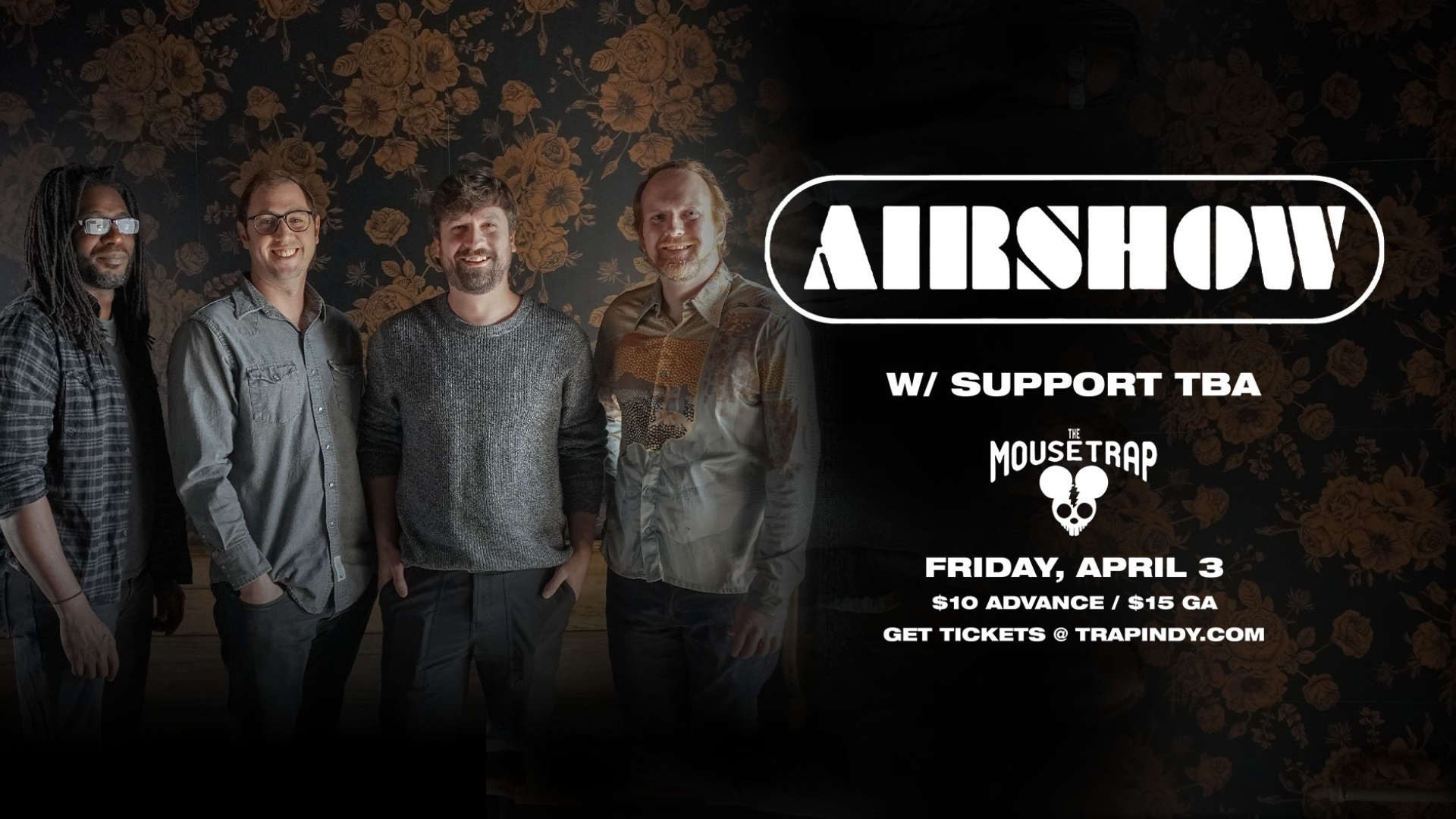 Hailing from Nashville, TN, Airshow is a high-flying jam band built on the dynamic contrast between wholesome bluegrass and high-energy electric jams! Don’t miss an evening of spirited songs, tight harmonies, and exploratory grooves that are sure to take the audience on a musical flight!
