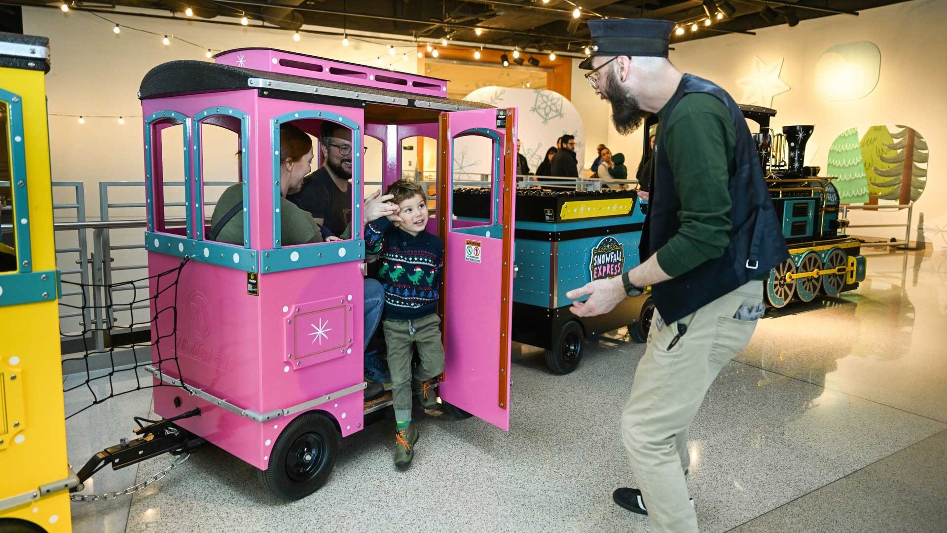Watch as Santa makes his grand entrance by helicopter on the front lawn of the museum at 10:30 a.m. He and Mrs. Claus will make their way to the Great Hall and press the Holiday Magic Button to light-up the beautiful 92 County Tree and kick off the holiday season! Bring the whole family and make cherished memories as Santa visits with children, spreading joy and cheer. There will be plenty of entertainment, live music, games and tons of activities to bring a smile to your face and a twinkle to your eye. Around the museum on all screens, you’ll catch glimpses of the latest updates on Elf News including Santa’s big arrival, the latest in snowball sports, recipes for Santa’s favorite cookies and more. Don’t miss a chance to hop on our magical Snowfall Express for an enchanting train ride through a winter wonderland.