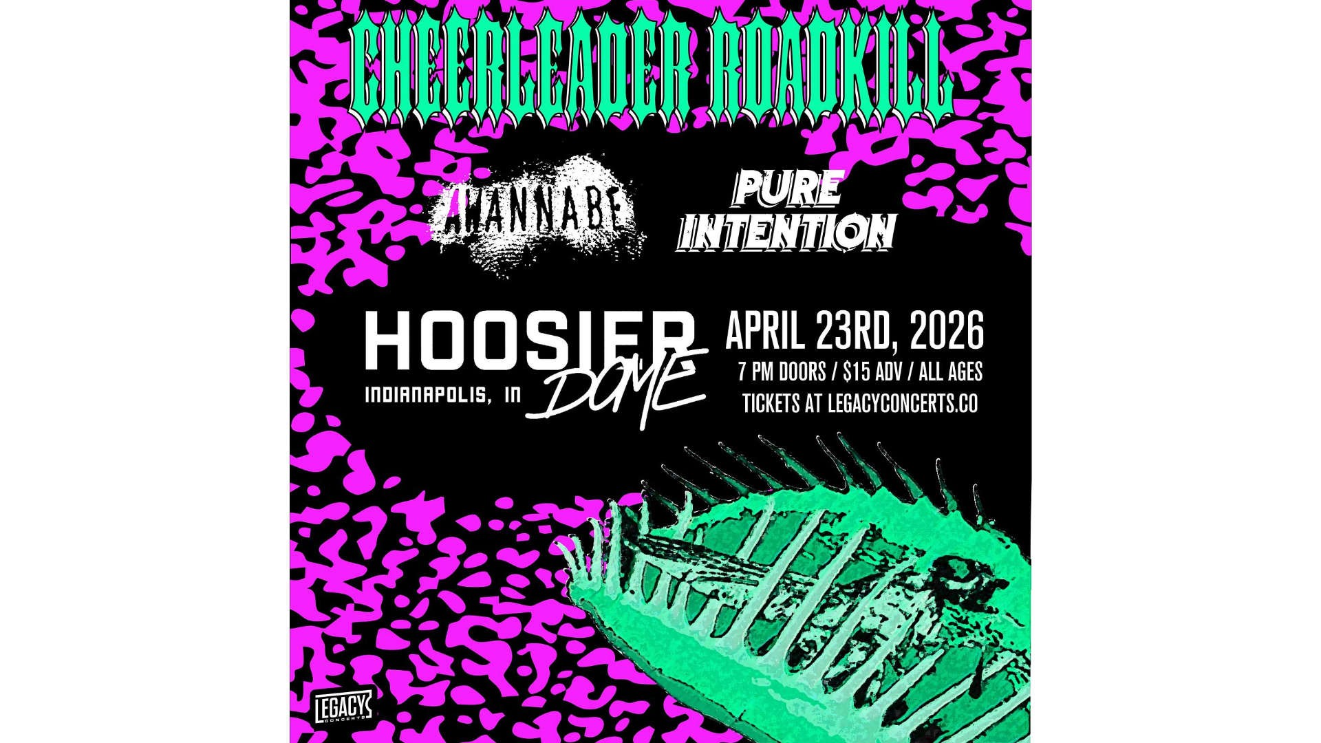 Share Home Cheerleader Roadkill Apr 23 8:00 PM Go To Website Save Map for Directions Cheerleader Roadkill1627 Prospect St. Indianapolis, Indiana 46203 United StatesDetailsOpen in Google Maps Hoosier Dome 1627 Prospect St. Indianapolis, Indiana 46203 Fountain Square Get Tickets Overview Cheerleader Roadkill7:30 doors open | 8:00 show Map Admission Map Admission $22.06 Upcoming Events at Hoosier Dome Apr 9 Save Map for Directions Takers, Remnants, Featherweight, Kahani, Thrown To Wolves1627 Prospect St. Indianapolis, Indiana 46203 United StatesDetailsOpen in Google Maps Fountain Square Takers, Remnants, Featherweight, Kahani, Thrown To Wolves Hoosier Dome Website Learn More Apr 12 Save Map for Directions Deformis EP Release Show1627 Prospect St. Indianapolis, Indiana 46203 United StatesDetailsOpen in Google Maps Fountain Square Deformis EP Release Show Hoosier Dome Website Learn More Apr 17 Save Map for Directions City Of Sound, Heavy Cab, Deadspeak1627 Prospect St. Indianapolis, Indiana 46203 United StatesDetailsOpen in Google Maps Fountain Square City Of Sound, Heavy Cab, Deadspeak Hoosier Dome Website Learn More Apr 19 Save Map for Directions Hot Flash Heat Wave1627 Prospect St. Indianapolis, Indiana 46203 United StatesDetailsOpen in Google Maps Fountain Square Hot Flash Heat Wave Hoosier Dome Website Learn More Apr 21 Save Map for Directions In Color1627 Prospect St. Indianapolis, Indiana 46203 United StatesDetailsOpen in Google Maps Fountain Square In Color Hoosier Dome Website Learn More Apr 23 Save Map for Directions Cheerleader Roadkill1627 Prospect St. Indianapolis, Indiana 46203 United StatesDetailsOpen in Google Maps Fountain Square Cheerleader Roadkill Hoosier Dome Website Learn More Apr 24 Save Map for Directions R.A.P. Ferreira and Foosie1627 Prospect St. Indianapolis, Indiana 46203 United StatesDetailsOpen in Google Maps Fountain Square R.A.P. Ferreira and Foosie Hoosier Dome Website Learn More Apr 25 Save Map for Directions Bike Routes1627 Prospect St. Indianapolis, Indiana 46203 United StatesDetailsOpen in Google Maps Fountain Square Bike Routes Hoosier Dome Website Learn More May 1 Save Map for Directions Butchered, Cut By Shards, Vivarium, World Of Malice and more1627 Prospect St. Indianapolis, Indiana 46203 United StatesDetailsOpen in Google Maps Fountain Square Butchered, Cut By Shards, Vivarium, World Of Malice and more Hoosier Dome Website Learn More May 2 Save Map for Directions Remember Me, Persevere, Valken Wolf, The Helsings, and more1627 Prospect St. Indianapolis, Indiana 46203 United StatesDetailsOpen in Google Maps Fountain Square Remember Me, Persevere, Valken Wolf, The Helsings, and more Hoosier Dome Website Learn More May 7 Save Map for Directions Summerbruise, Tan and Handsome, Echo, Best Noodles In Town1627 Prospect St. Indianapolis, Indiana 46203 United StatesDetailsOpen in Google Maps Fountain Square Summerbruise, Tan and Handsome, Echo, Best Noodles In Town Hoosier Dome Website Learn More May 13 Save Map for Directions Left On Red, Remnants, Elijah, Moonside1627 Prospect St. Indianapolis, Indiana 46203 United StatesDetailsOpen in Google Maps Fountain Square Left On Red, Remnants, Elijah, Moonside Hoosier Dome Website Learn More