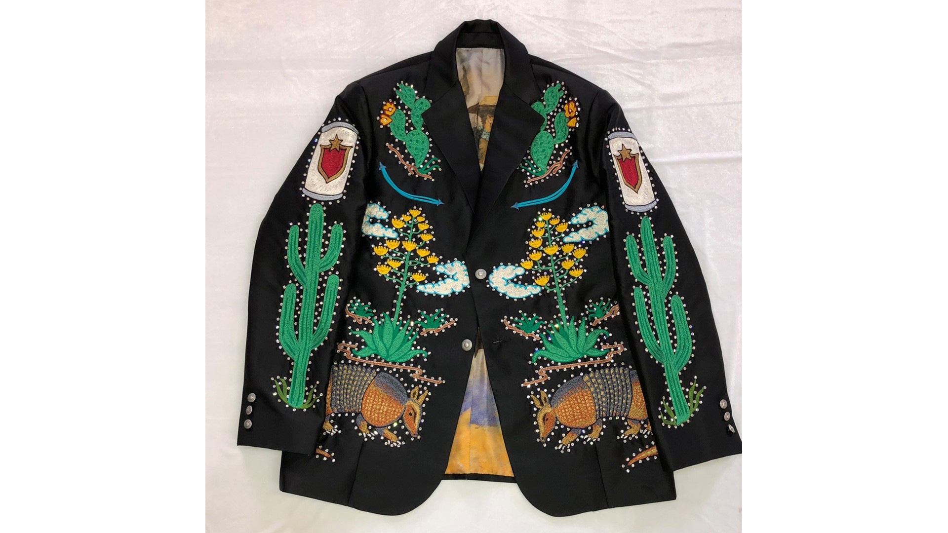 Cowboy Couture: The Fashion of Jerry Lee Atwood celebrates dazzling suits blossoming with chain-stitch embroidery that Atwood has created over his career. The exhibition of Atwood’s designs connects his work to classic country music looks and pop culture of the American West. Visitors will learn how Atwood’s work harkens back to 20th century Western-wear designers, such as Nudie Cohn and Nathan Turk, who created elaborate rhinestone outfits for country music performers, and to earlier examples of 19th century Native and vaquero attire. Cowboy Couture examines Atwood’s creative process through photographs and design sketches, and includes a vignette with items from his Indianapolis studio.