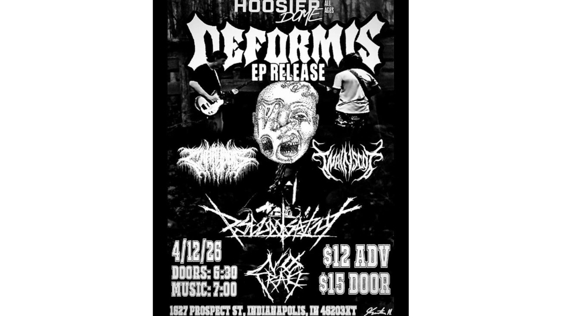 Apr 12 Save Map for Directions Deformis EP Release Show1627 Prospect St. Indianapolis, Indiana 46203 United StatesDetailsOpen in Google Maps Fountain Square Deformis EP Release Show Hoosier Dome Website Learn More