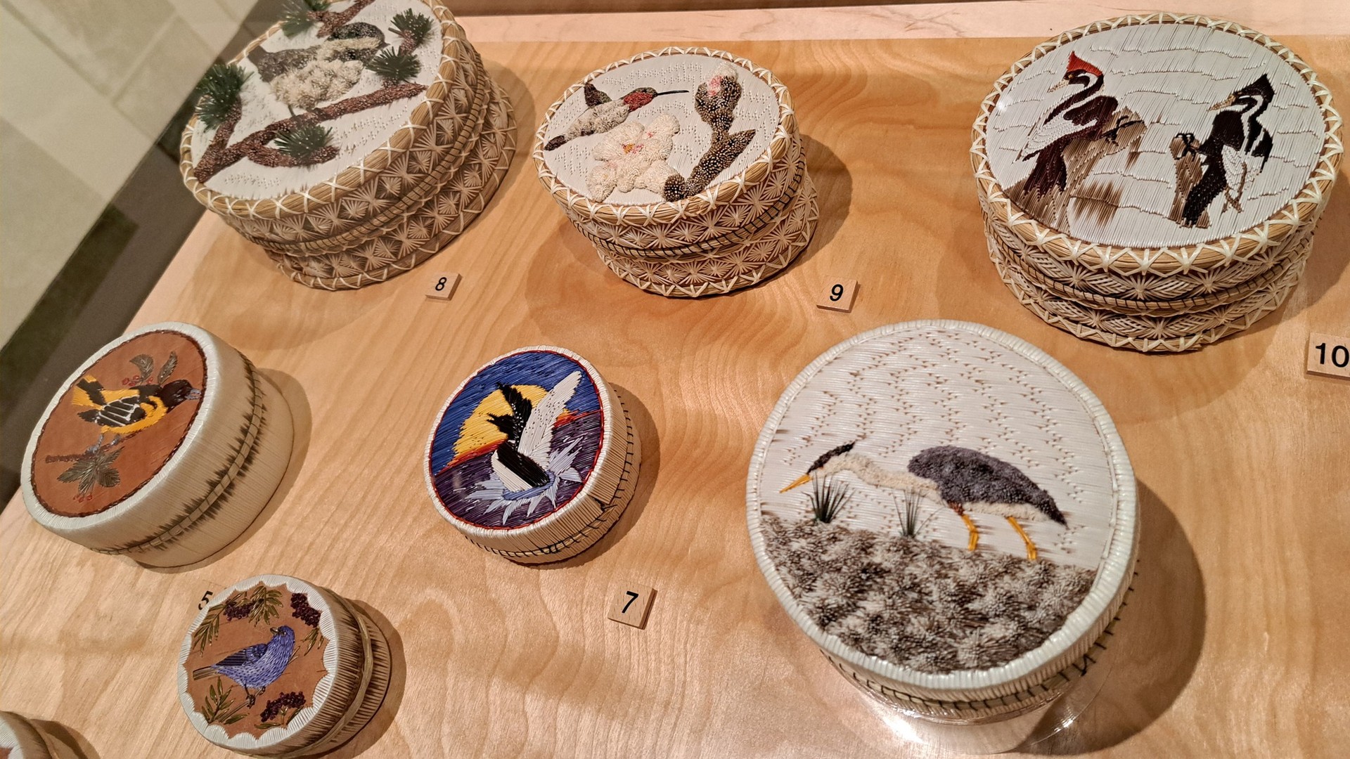 A traveling exhibition of the Ziibiwing Center of Anishinaabe Culture & Lifeways features more than 90 beautiful quill artworks from the Great Lakes region. The exhibition focuses on how quillboxes are made and their importance to the Anishinaabe peoples.