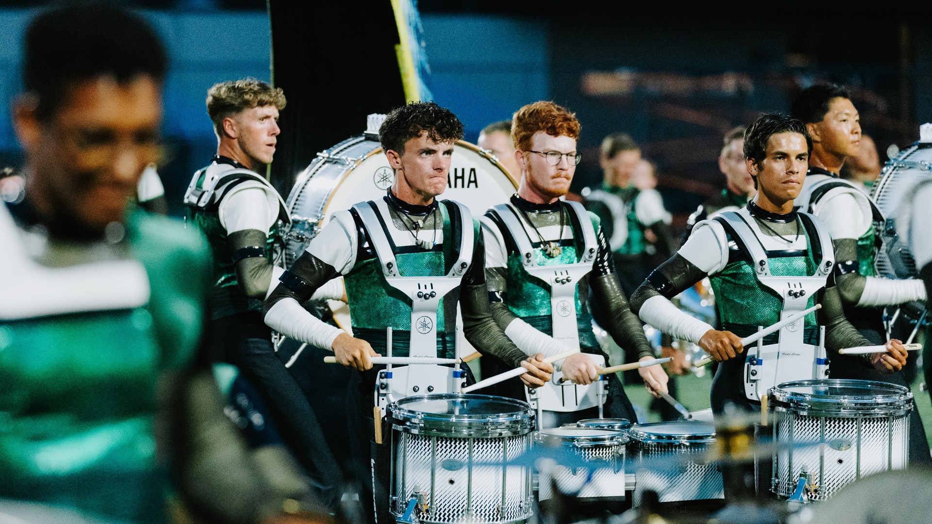 The performers of both groups are talented young adults showcasing elite athleticism and top-tier musicianship. Members of each corps undergo a rigorous winter audition process and a grueling training schedule, coming together once a month from December until May, and then moving in together to rehearse daily. 12+ hour rehearsal days in the summer allow these groups to achieve a level of synchronization and musicality that rivals professional orchestras and Broadway productions. "Inside The Sound" is the culmination of thousands of hours of preparation, brought into an intimate, high-energy indoor setting just before the groups begin their national travels.