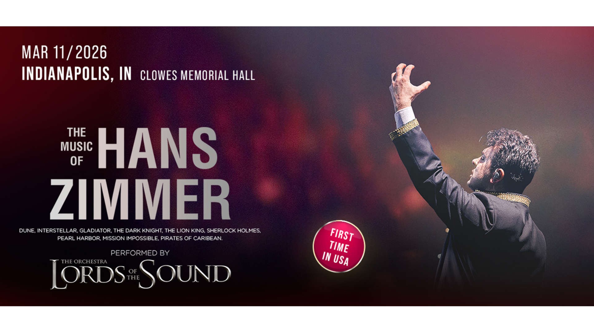 With The Music of Hans Zimmer, Lords of the Sound pays homage to one of cinema’s greatest living composers. Zimmer’s award-winning soundtracks have shaped the modern era of film, creating unforgettable emotional depth and atmosphere. The concert features epic selections from beloved blockbusters including: Dune, The Dark Knight, Inception, Pirates of the Caribbean, Interstellar, Sherlock Holmes, The Lion King, Man of Steel, and more. Audiences will be swept away by the intensity, beauty, and power of Zimmer’s iconic scores performed live.