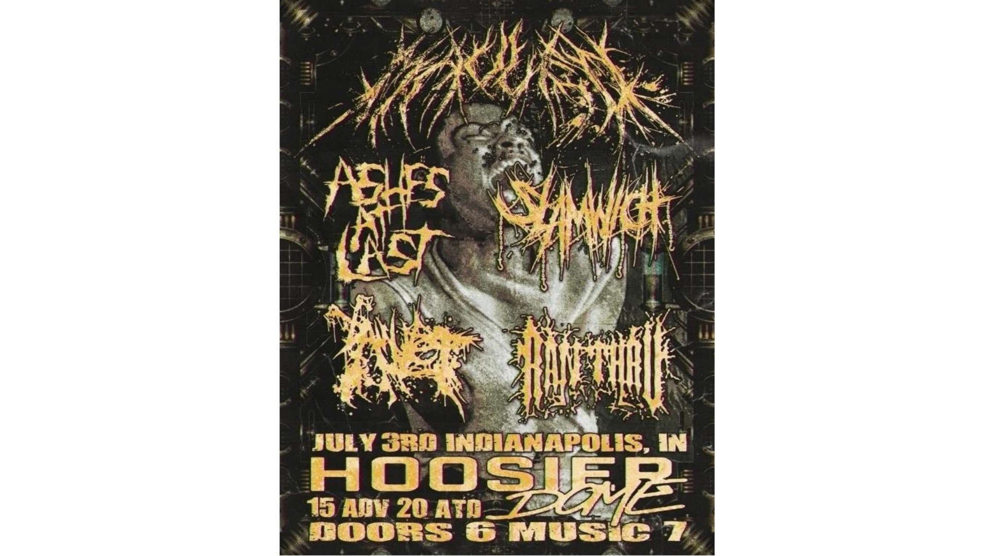 Share Home Mauled, Ashes At Last, Slamwich, Amulet, Ran Thru Jul 3 7:00 PM Go To Website Save Map for Directions Mauled, Ashes At Last, Slamwich, Amulet, Ran Thru1627 Prospect St. Indianapolis, Indiana 46203 United StatesDetailsOpen in Google Maps Hoosier Dome 1627 Prospect St. Indianapolis, Indiana 46203 Fountain Square Get Tickets Overview MAULEDASHES AT LASTSLAMWICH AMULETRAN THRU$15 advance | $20 day of6:00 doors open | 7:00 show Map Admission Map Admission from $15.00 Upcoming Events at Hoosier Dome May 1 Save Map for Directions Butchered, Cut By Shards, Vivarium, World Of Malice and more1627 Prospect St. Indianapolis, Indiana 46203 United StatesDetailsOpen in Google Maps Fountain Square Butchered, Cut By Shards, Vivarium, World Of Malice and more Hoosier Dome Website Learn More May 2 Save Map for Directions Remember Me, Persevere, Valken Wolf, The Helsings, and more1627 Prospect St. Indianapolis, Indiana 46203 United StatesDetailsOpen in Google Maps Fountain Square Remember Me, Persevere, Valken Wolf, The Helsings, and more Hoosier Dome Website Learn More May 3 Save Map for Directions The Hoosier State, Syzygy, Posh, Squatchwalk, Misunderstood1627 Prospect St. Indianapolis, Indiana 46203 United StatesDetailsOpen in Google Maps Fountain Square The Hoosier State, Syzygy, Posh, Squatchwalk, Misunderstood Hoosier Dome Website Learn More May 7 Save Map for Directions Summerbruise, Tan and Handsome, Echo, Best Noodles In Town1627 Prospect St. Indianapolis, Indiana 46203 United StatesDetailsOpen in Google Maps Fountain Square Summerbruise, Tan and Handsome, Echo, Best Noodles In Town Hoosier Dome Website Learn More May 8 Save Map for Directions Sterling Elza, Cole Barnhill1627 Prospect St. Indianapolis, Indiana 46203 United StatesDetailsOpen in Google Maps Fountain Square Sterling Elza, Cole Barnhill Hoosier Dome Website Learn More May 13 Save Map for Directions Left On Red, Remnants, Elijah, Moonside1627 Prospect St. Indianapolis, Indiana 46203 United StatesDetailsOpen in Google Maps Fountain Square Left On Red, Remnants, Elijah, Moonside Hoosier Dome Website Learn More May 16 Save Map for Directions House of Heavy1627 Prospect St. Indianapolis, Indiana 46203 United StatesDetailsOpen in Google Maps Fountain Square House of Heavy Hoosier Dome Website Learn More May 22 Save Map for Directions Ryman Leon1627 Prospect St. Indianapolis, Indiana 46203 United StatesDetailsOpen in Google Maps Fountain Square Ryman Leon Hoosier Dome Website Learn More May 27 Save Map for Directions 'Stay Gold' Benefit Show for the family of Aaron Riddle1627 Prospect St. Indianapolis, Indiana 46203 United StatesDetailsOpen in Google Maps Fountain Square ‘Stay Gold’ Benefit Show for the family of Aaron Riddle Hoosier Dome Website Learn More May 29 Save Map for Directions Thief. With Coldstate, Exitwounds, And Provoked1627 Prospect St. Indianapolis, Indiana 46203 United StatesDetailsOpen in Google Maps Fountain Square Thief. With Coldstate, Exitwounds, And Provoked Hoosier Dome Website Learn More May 31 Save Map for Directions '68 Farewell Tour1627 Prospect St. Indianapolis, Indiana 46203 United StatesDetailsOpen in Google Maps Fountain Square ’68 Farewell Tour Hoosier Dome Website Learn More Jun 4 Save Map for Directions Stories Through Storms, SSX1627 Prospect St. Indianapolis, Indiana 46203 United StatesDetailsOpen in Google Maps Fountain Square Stories Through Storms, SSX Hoosier Dome Website Learn More