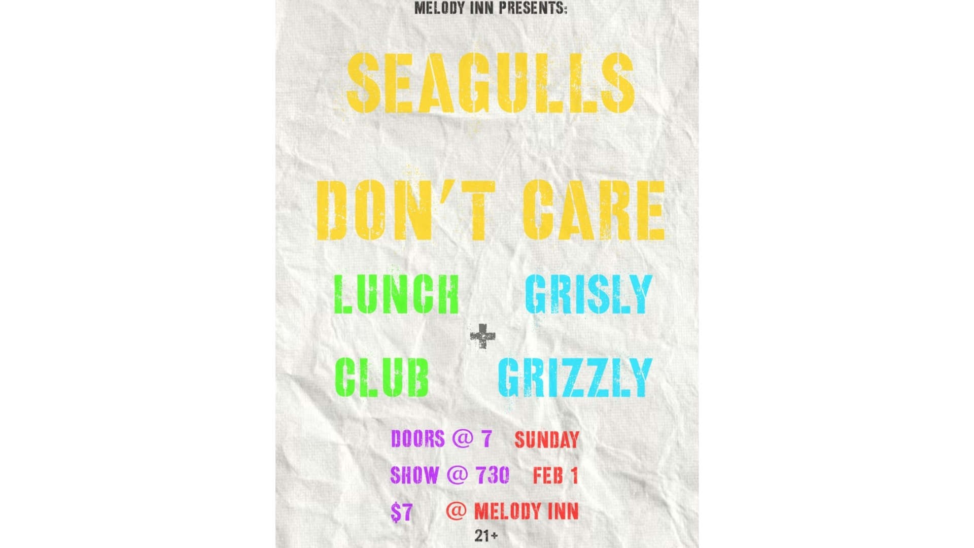 SEAGULLS DON’T CARE, LUNCH CLUB, GRISLY GRIZZLY