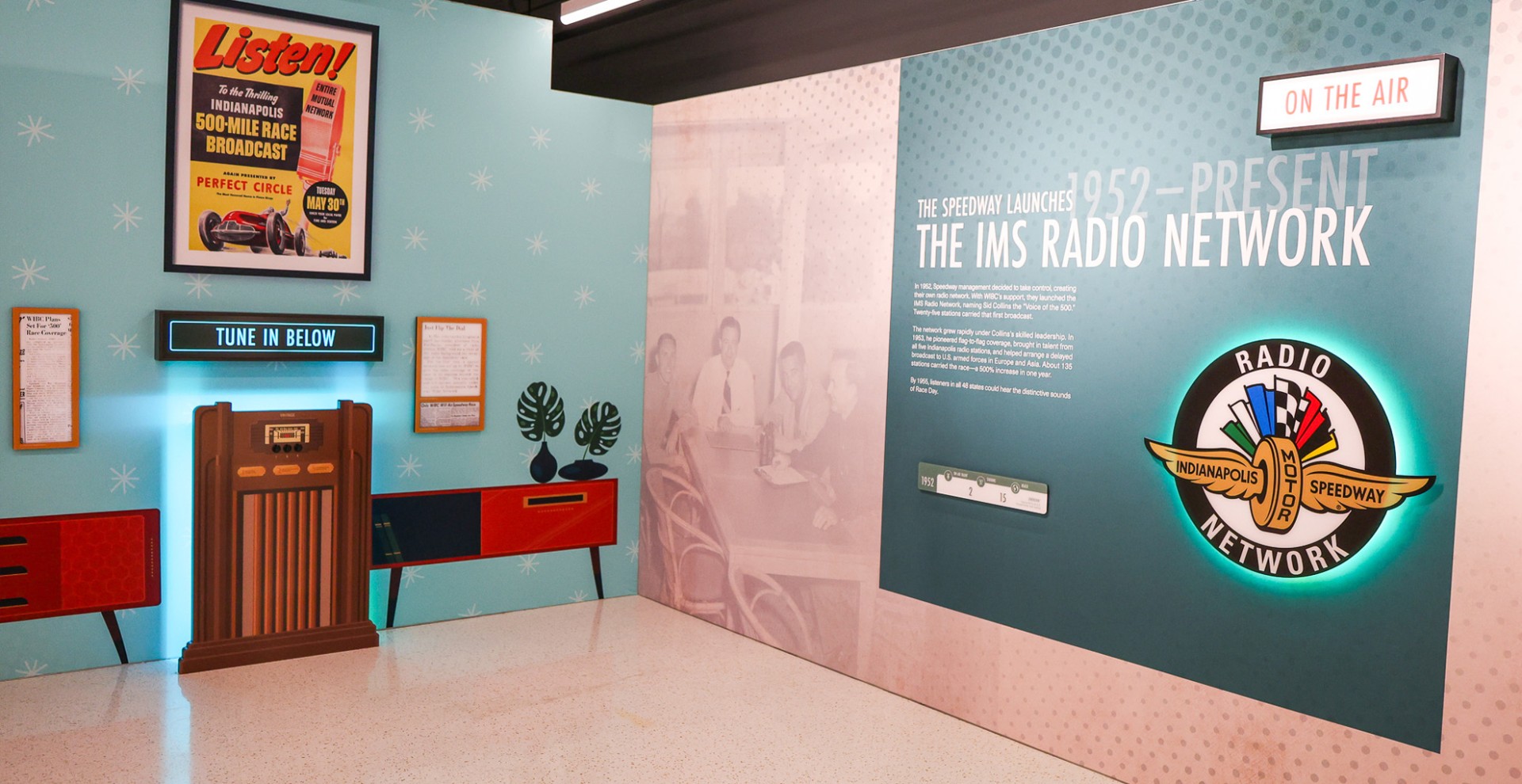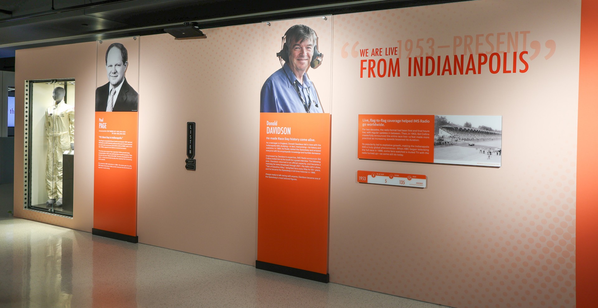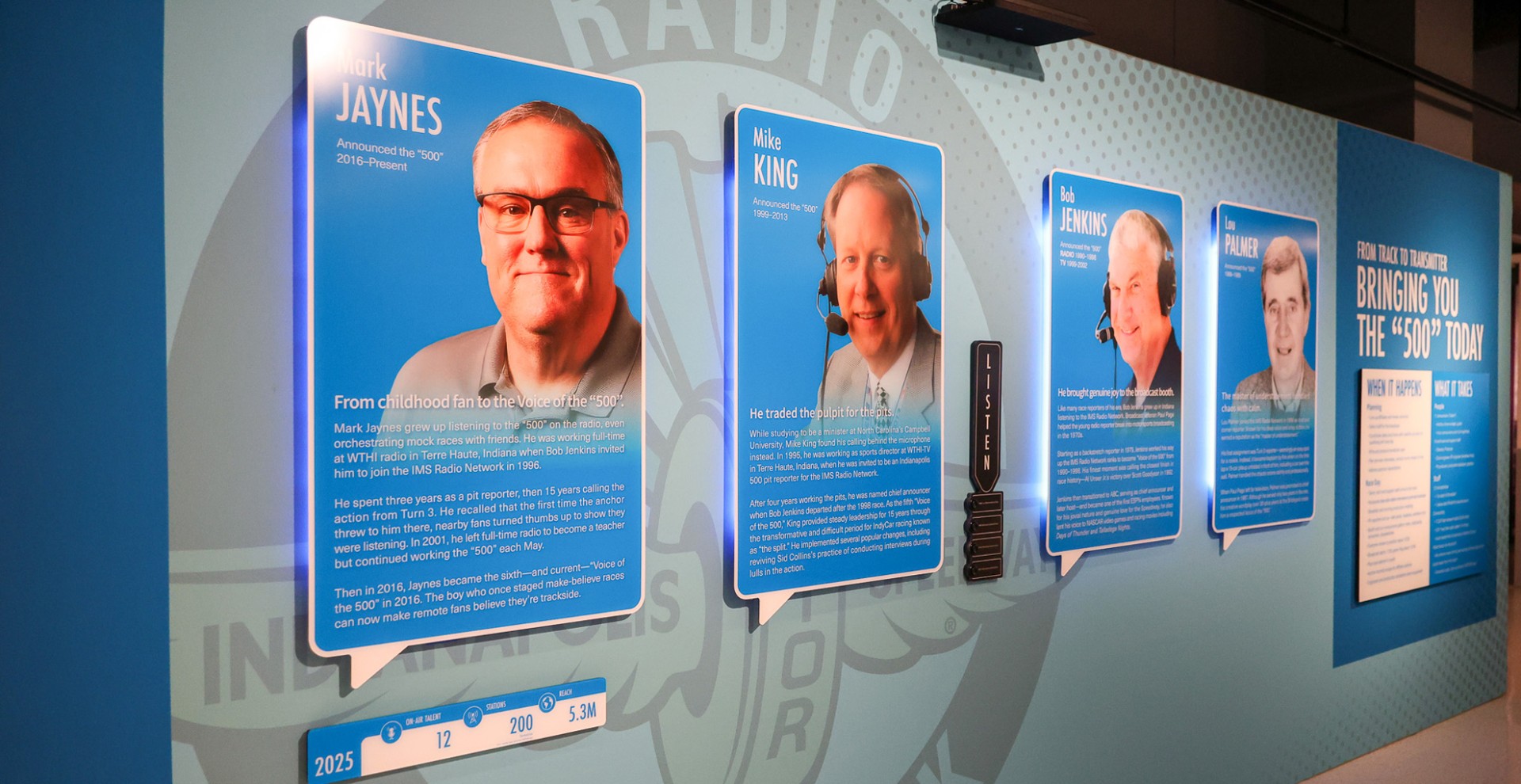 Guests will hear the voices of generations past as they’re immersed in different eras of broadcasting. With sections including IMS Radio Network, ABC’s Wide World of Sports, and present-day FOX Sports coverage, guests will learn and listen to the voices of beloved broadcasters who have led race coverage, from Sid Collins and Paul Page to Jim McKay and Bob Jenkins.