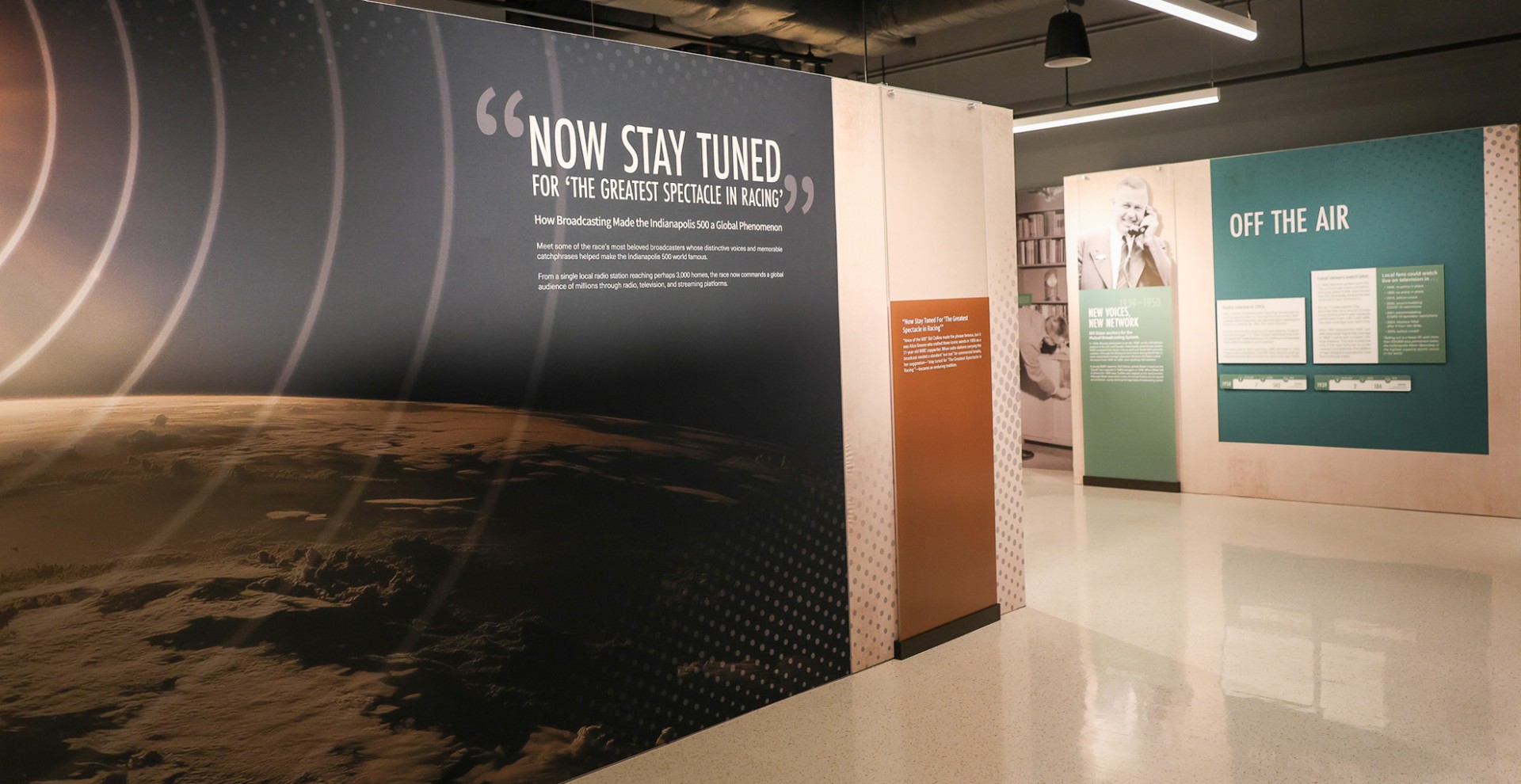 The Indianapolis Motor Speedway Museum (IMS Museum)’s newest exhibition, “Now Stay Tuned”, is located in The Chip Ganassi Gallery in the Lower Level.