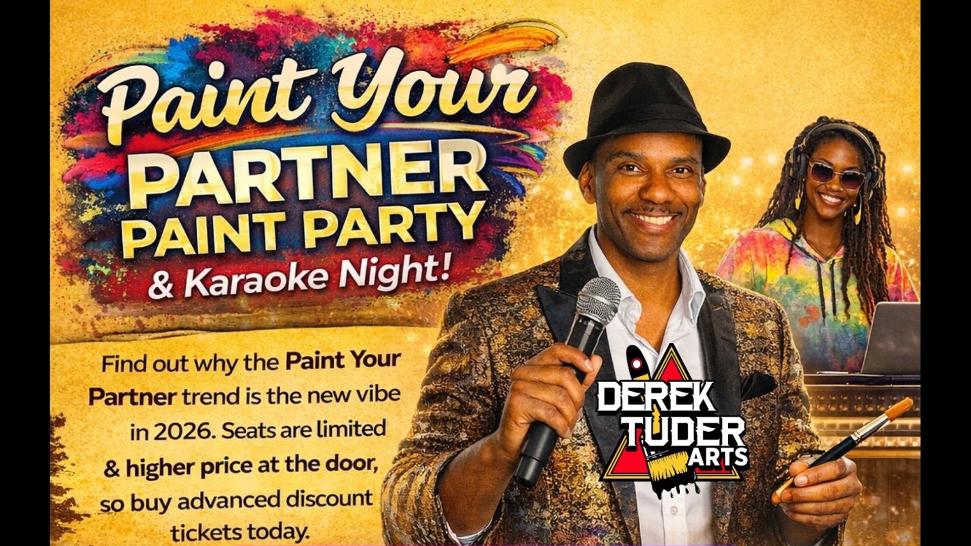 Find out why the Paint Your Partner trend is the new vibe in 2026. Seats are limited and the price is higher at the door. Come for the fun, food and drinks, and prizes. Hosted by Derek Tuder, The A-Team, & DJ Coop.