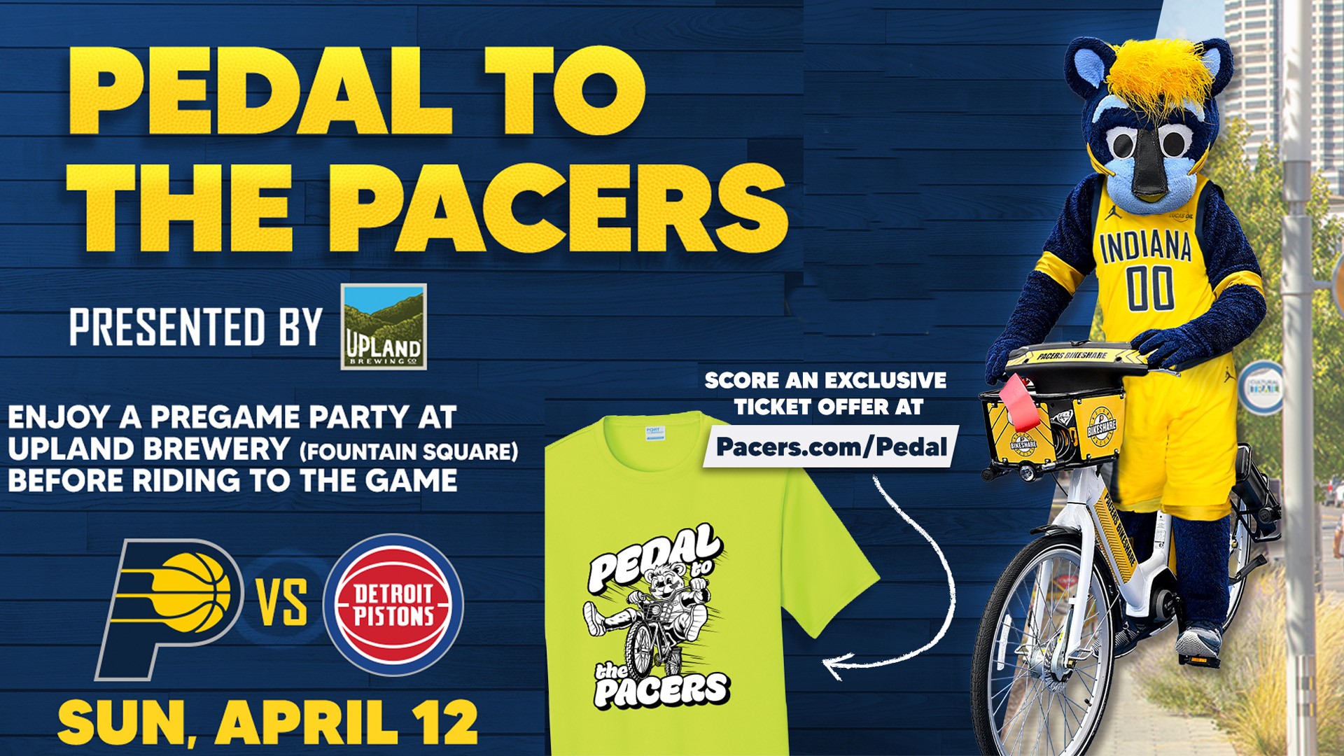 Riders will roll out from the party and arrive in time to park their bikes and cheer on the Indiana Pacers as they host the Detroit Pistons for their final home game of the season. Limited edition Pedal to the Pacers t-shirts are available with every purchased ticket. For more information or to purchase tickets, visit Pacers.com/Pedal.