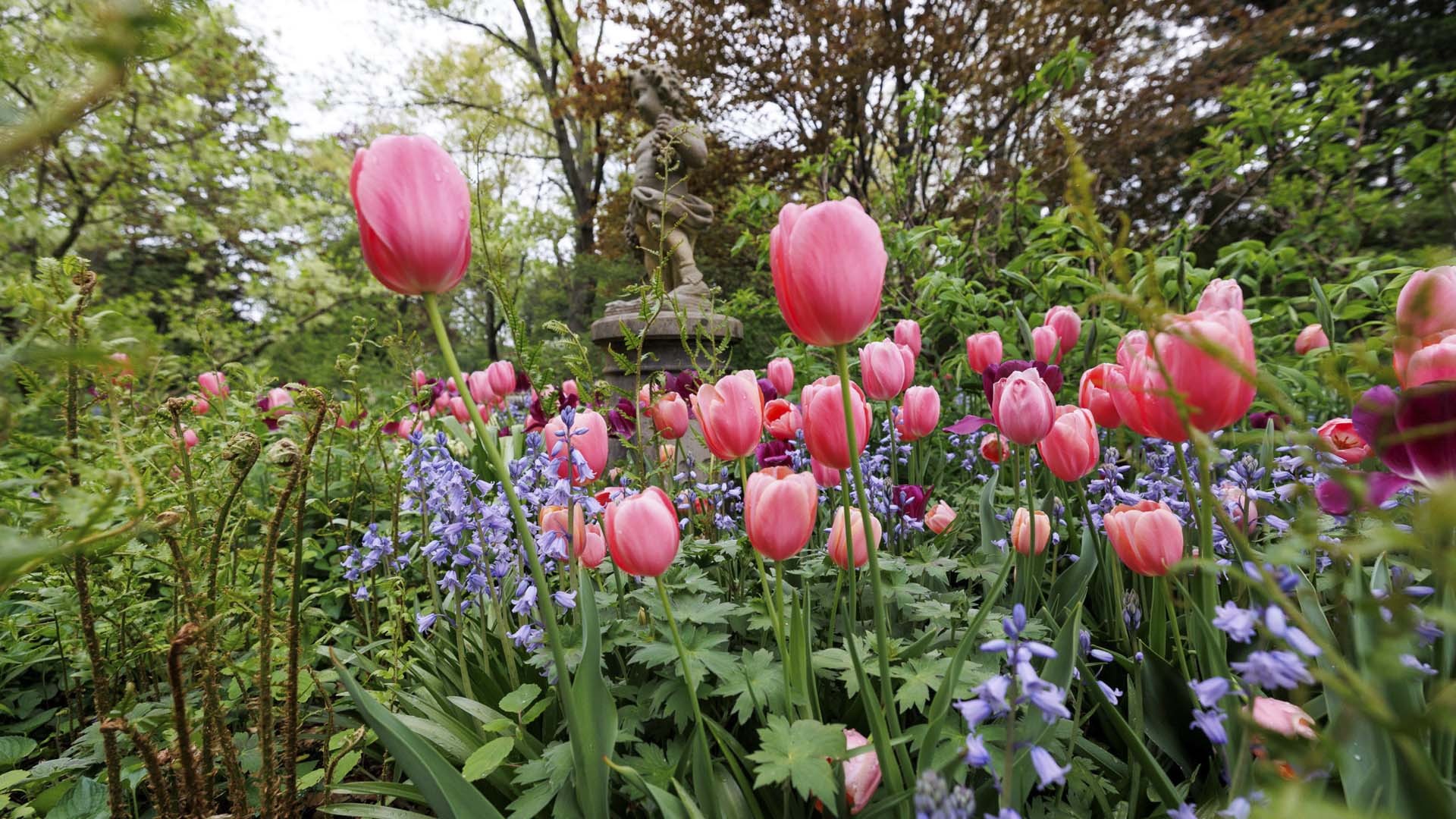 As the season progresses, more than 60,000 new bulbs including daffodils (Narcissus spp.), hyacinths, tulips, and more will slowly emerge to blanket every corner of The Garden. The latest days of spring will bring spectacular scenes of flowering trees and shrubs, including favorites like serviceberry (Amelanchier sp., also known as shadbush or Junebush), eastern redbud (Cercis canadensis) and flowering dogwood (Cornus florida).