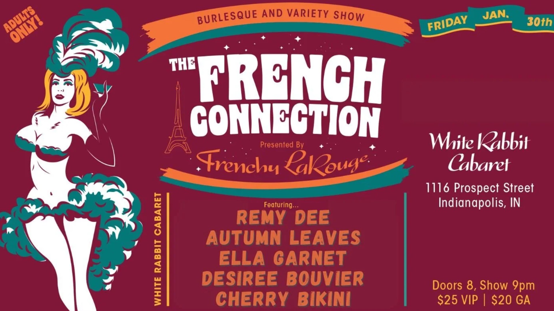 Hop down to the White Rabbit Cabaret for an exceptional evening of burlesque & variety acts at The French Connection! Presented & hosted by the Rocket Doll Revue's Frenchy LaRouge, and featuring a rotating cast of some of the best entertainers from the Midwest & beyond, this show is sure to satisfy.