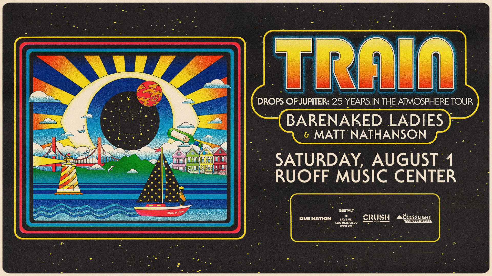 Since their formation in 1994, multi-GRAMMY Award-winning, diamond-selling band Train has sold more than 10 million albums and 30 million tracks worldwide, amassing over six billion global streams. Train’s climb to the top began in San Francisco, as the original 5-member band tenaciously built a loyal hometown following, leading up to their debut self-titled album released by Columbia in 1998. The tumbling wordplay of "Meet Virginia'' gave them their first unlikely radio hit, and 2001’s career-defining album Drops of Jupiter broke them to multi-platinum status. Known for their critically acclaimed catalogue of chart-topping hits including RIAA diamond-certified, #1 best-selling smash “Hey, Soul Sister,” double-GRAMMY-winning iconic track “Drops of Jupiter,” and 5x RIAA platinum-certified anthem “Drive By,” Train has had 14 songs on Billboard’s Hot 100 Chart and 13 albums on the Billboard 200, six of which reached the Top 10, including Drops of Jupiter (2001), My Private Nation (2003), California 37 (2012), Bulletproof Picasso (2014), For Me, It's You (2016), and a girl a bottle a boat (2017). For over three decades, Train has been captivating audiences around the world, earning global recognition with their signature blend of rock and pop, infectious melodies, and heartfelt lyrics. The band’s dynamic touring history includes headline amphitheater and arena runs across North America and beyond, as well as the launch of their Sail Across the Sun Cruise, an annual at-sea music festival that has become a cornerstone fan experience. With an extraordinary career that includes three GRAMMY Awards, two Billboard Music Awards, multiple diamond/platinum/gold citations, and dozens of other honors, Train continues to reach new milestones, boasting two tracks, “Hey, Soul Sister” and “Drops of Jupiter,” that have reached RIAA Diamond status and surpassed one billion streams on Spotify. Next up, Train will release a new EP this spring to celebrate the 25th anniversary of hit album Drops of Jupiter, followed by a headline 2026 summer tour, Drops of Jupiter: 25 Years in The Atmosphere, which kicks off July 8.